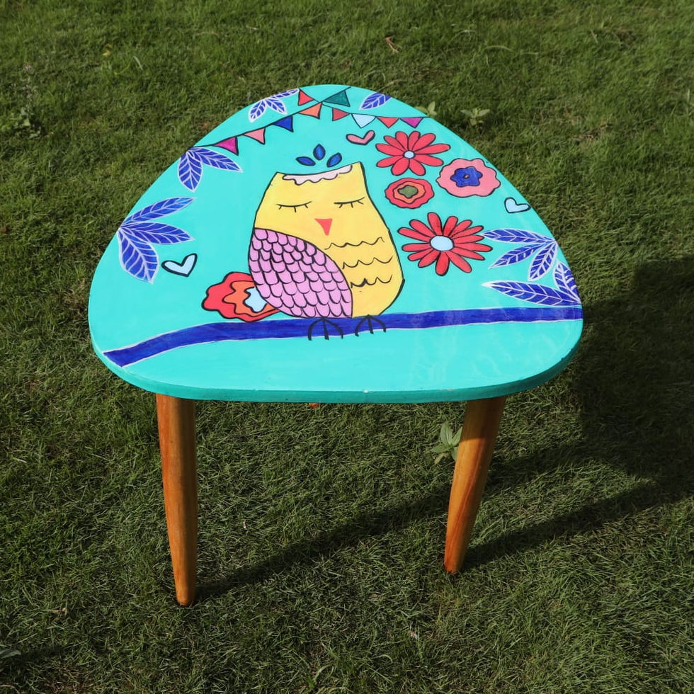Handpainted folding coffee table with resin coted top, waterproff and ideal for home décor, with three detachable legs